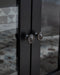 - 2 glass door storage cabinets, each with adjustable shelf