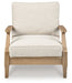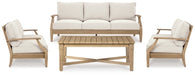 This outdoor seating package effortlessly pairs natural beauty with must-have durability. Its eucalyptus wood construction withstands the elements while making a high-style impression. And you can relax on the porch or poolside without the stress of added upkeep‚ this set's UV-resistant performance fabric is a breeze to clean.